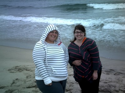 The first glimpse of the ocean I got last night absolutely terrified me. There is something about seeing the dark, smoldering grey of the cloudy night sky meet the inky black of the water on the horizon. When the only thing breaking up the shades of black are the white caps of waves crashing up on the shore, the ocean is a beautiful, terrible sight. There was no moon, no stars. The only light on the beach came from lighting along the bike path and the flashlights we brought with us.