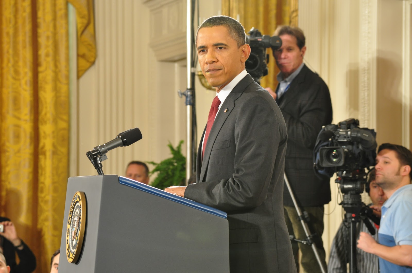 This time, when the president entered, I didn’t have the same, “Oh. My. God.” moment. Instead, I joined the chorus of shutters going all around the room. I took a decent number of pictures, and got a little video. And if you check the video on C-SPAN, you can see me off in the distance.