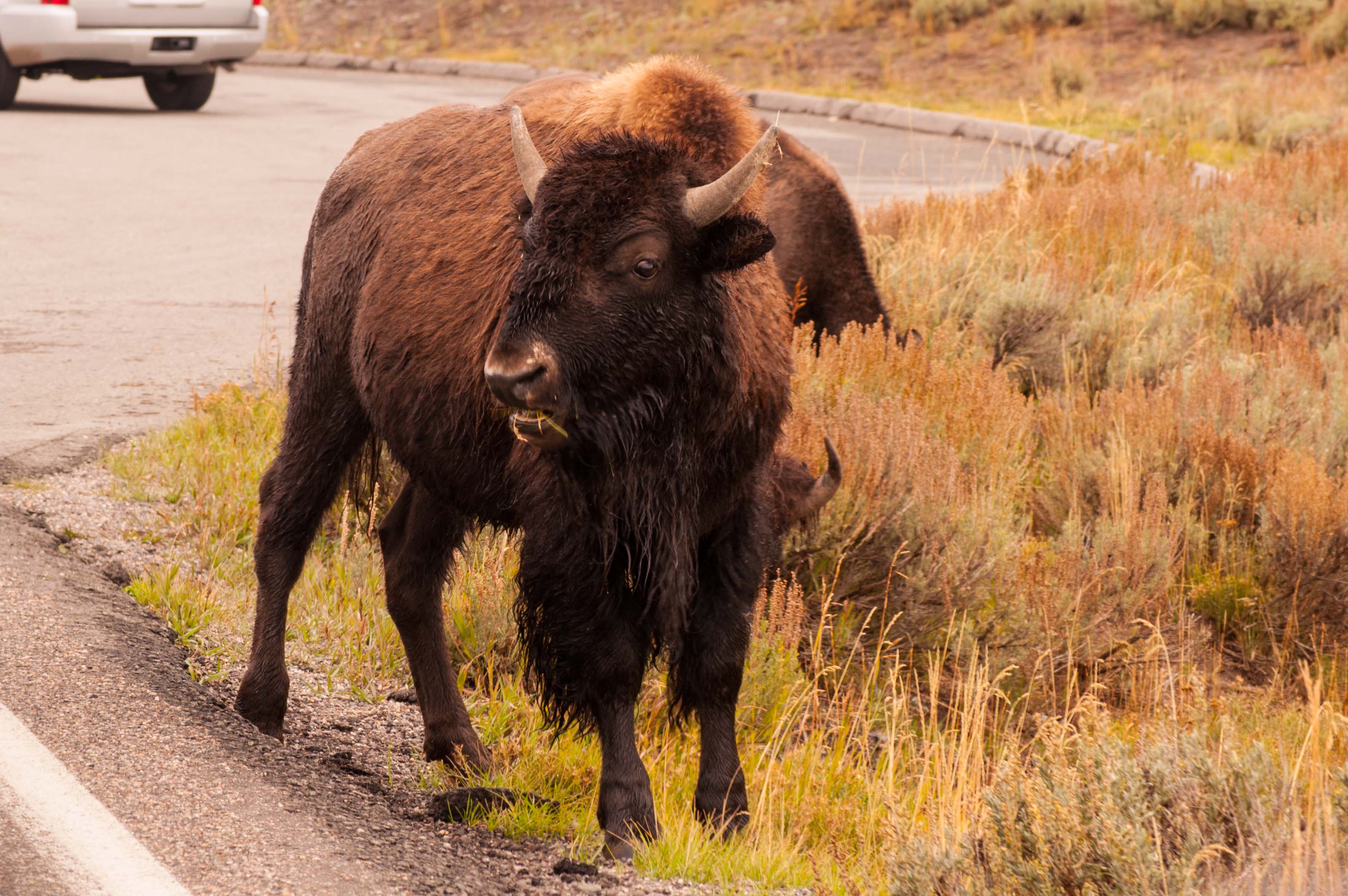 Though you can’t see them in this picture, there were some people standing on the sides of the road where the bison were crossing. I applaud their idiocy. Fortunately, we didn’t see any bison attacks.
