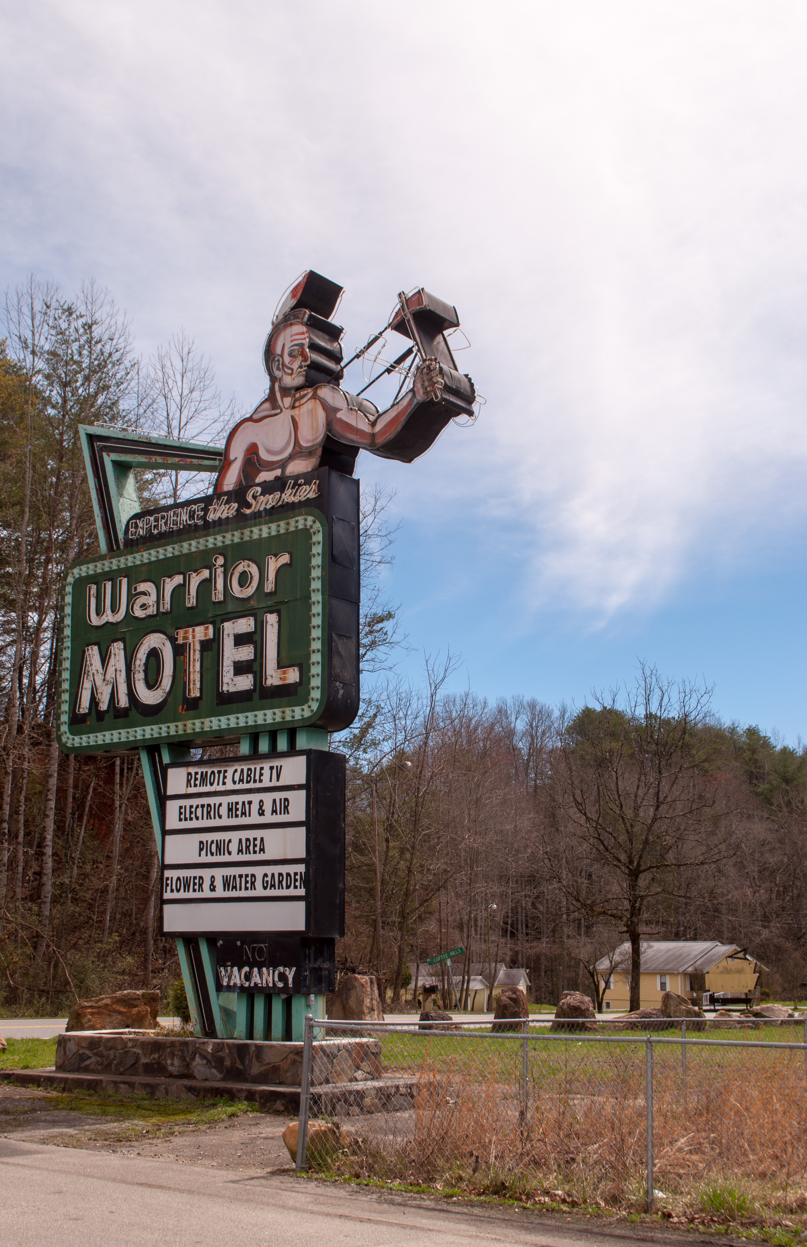 The Warrior Motel is one of the abandoned motor courts around Bryson City and Cherokee, NC.  Now, a local shop owner has purchased the property and operates out of the front of the motel.