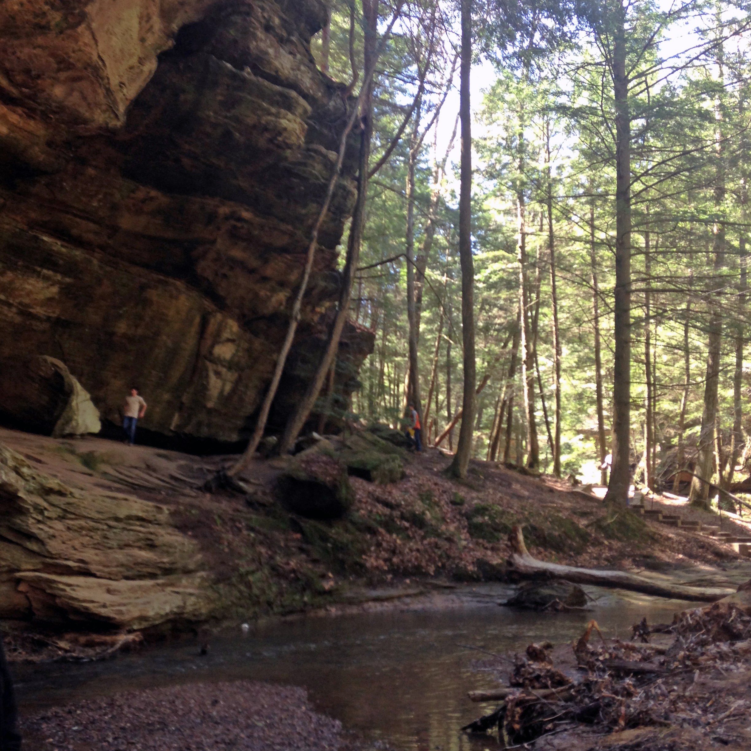 Old Man’s Cave is a short, easy one-mile hike from the visitor’s center. The cave is named after a hermit who lived there with his two dogs in the 1860s. You can take the trailhead that comes down behind the visitor’s center, and all the stairs that go with it, or you can hop on the trail from the opposite end of the parking lot and pass a couple of pretty little waterfalls on your way out.