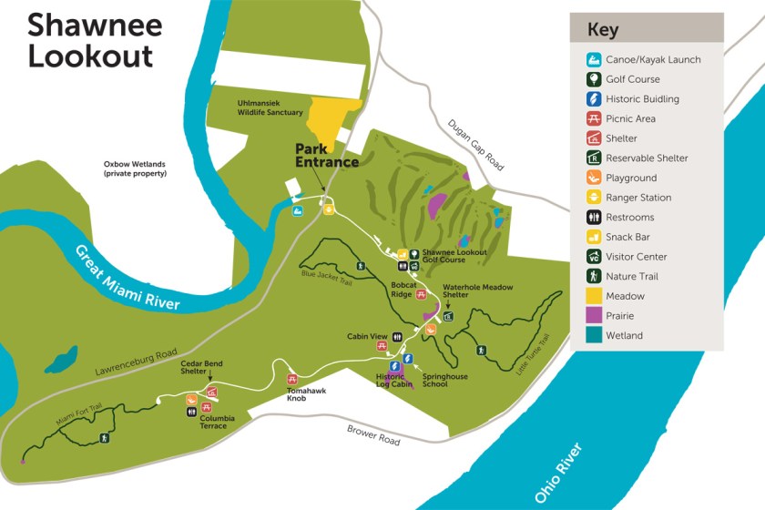 Today, I was supposed to knock out three hikes and make up for some lost time. But, with the temperature in the single digits this morning when I started to head out, I thought I’d rather just curl up with a pot of coffee and get some busy work done. (Hiking in sub-zero temps may be OK with The Real Hiking Viking, but not for Cassie. Though I am enjoying watching his hike progress.) I was going to hike Shawnee Lookout today, but instead I’ll fill you in on some of the history of my second-favorite local park. Then next weekend, we’ll see how my lungs fare on its trails.