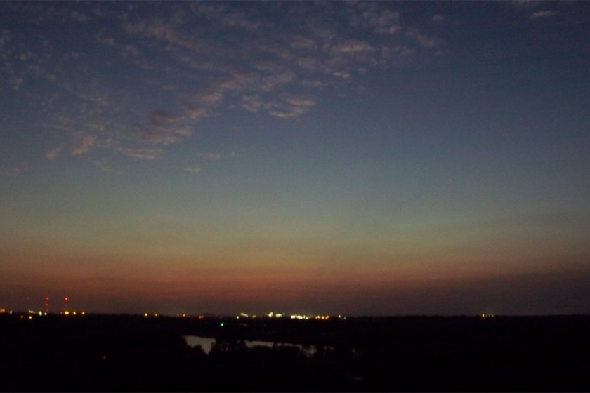 We finally made it to Hannibal, Mo. for our first stop of the trip. We actually made it on the road by 2 p.m. as planned but traffic at some inopportune moments kept holding us back. Everything was going well until we were about 30 minutes from Cohokia Mounds State Historic Site — about 30 minutes from sunset when the park closed. Traffic came to a dead stop and Cory realized we must have hit traffic from an accident he heard some locals talking about at a gas station. In a desperate attempt to avoid the traffic and make it to the Mounds before dark, we exited off the Interstate and followed a line of cars doing the same thing. Of course, that was when Sheila, the GPS, decided to become useless. Apparently a U-turn was the only solution she could think of. So while Shelia kept yelling at us to turn around, Amanda and I figured out what road we ended up on, used the sun to determine what direction we were headed on …